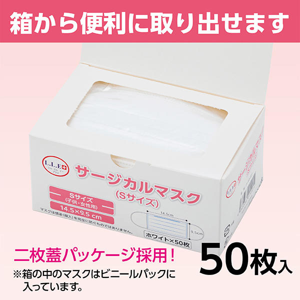 【サージカルマスク(Sサイズ)(BFE99%以上)50枚入のスペック】