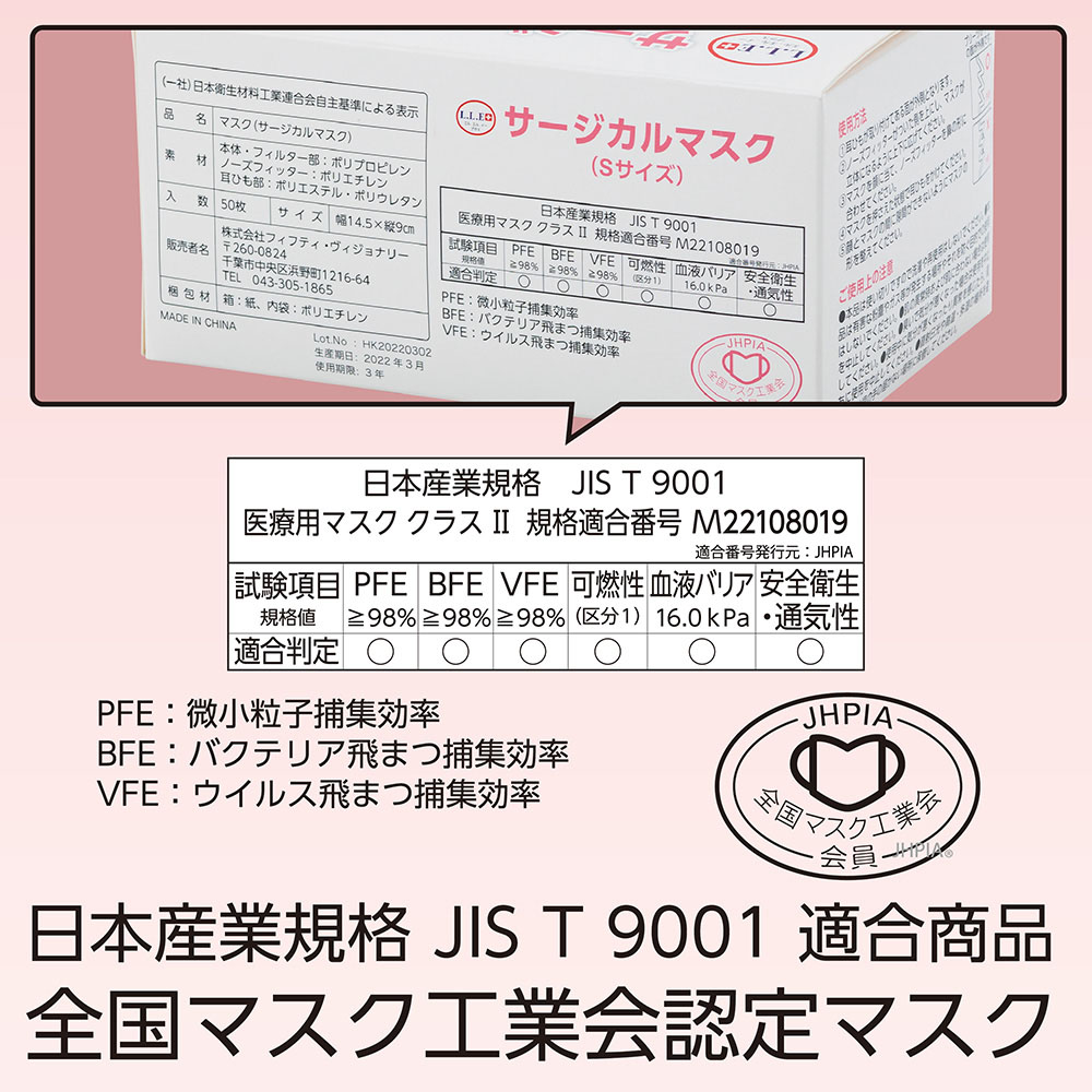 ※BFE=「細菌ろ過効率」の意味。