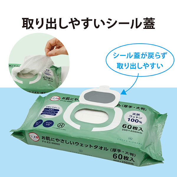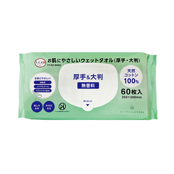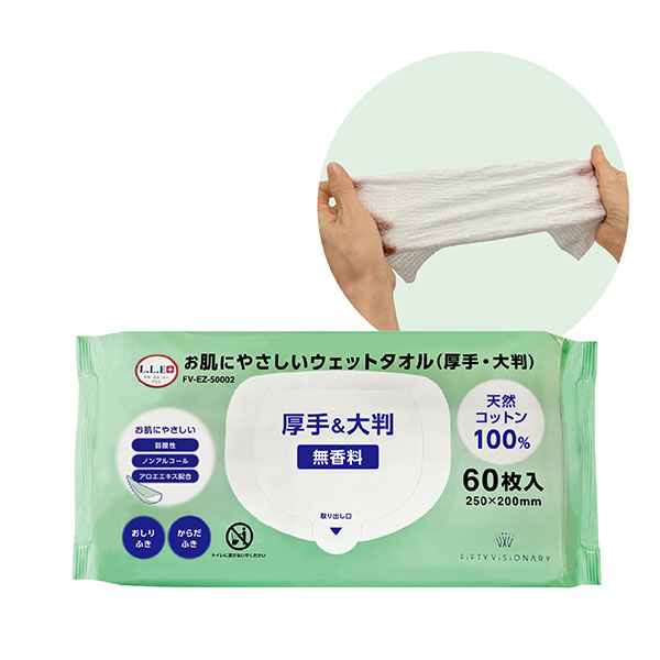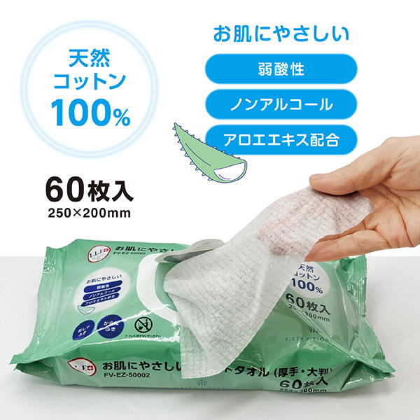 FV-EZ-50002 LLE+ お肌にやさしいウェットタオル(厚手・大判)60枚入/袋